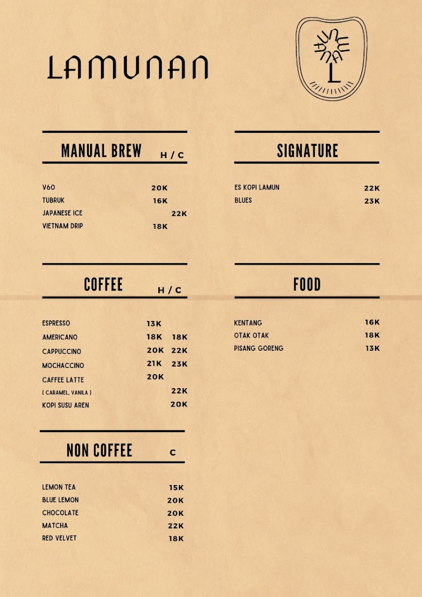 Lamunan kopi Menu